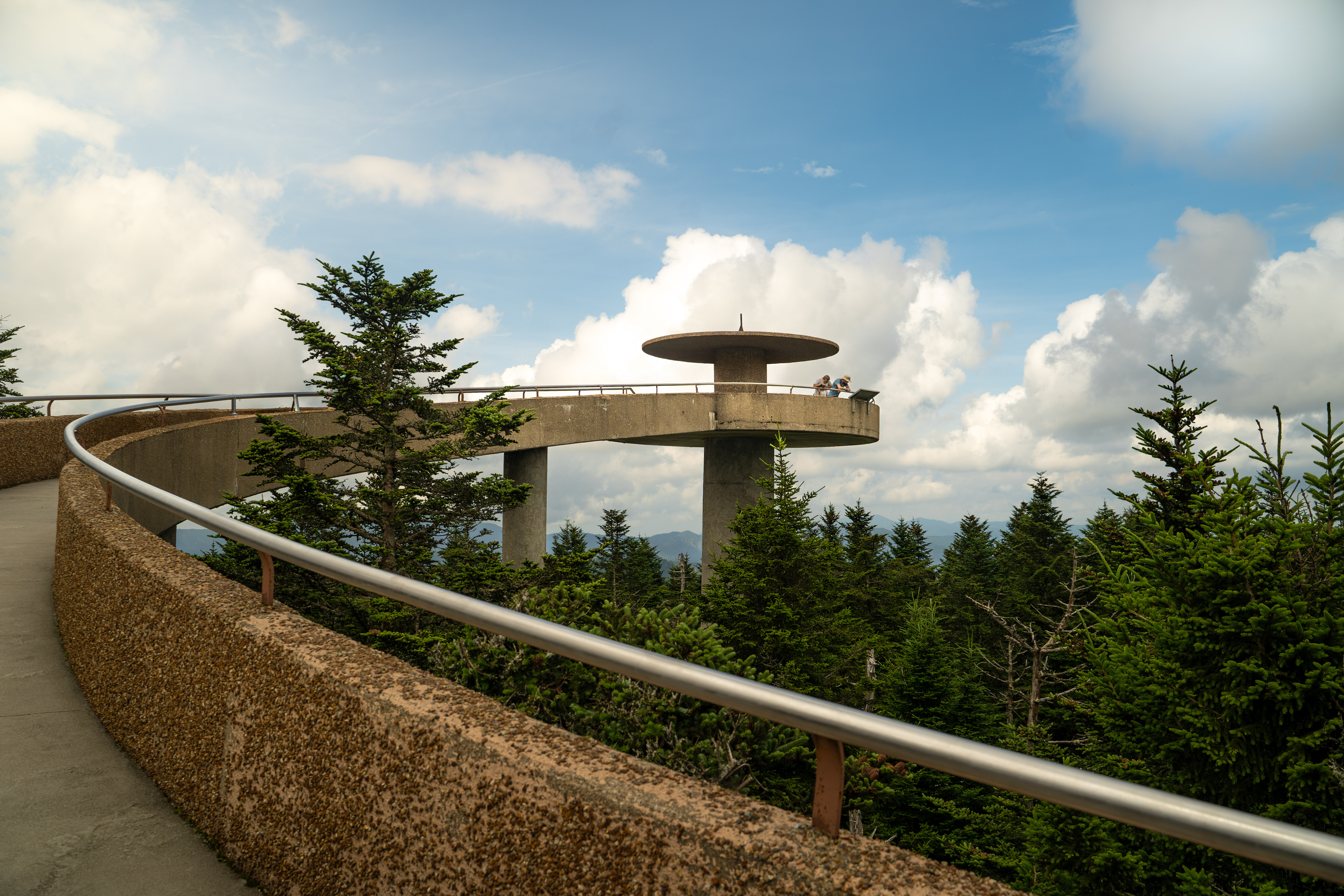 The highest point in the park at 6,643 feet, this paved 1-mile roundtrip walk takes you to a 360-degree observation tower with unforgettable views, especially at sunrise or sunset. - Newfound Gap